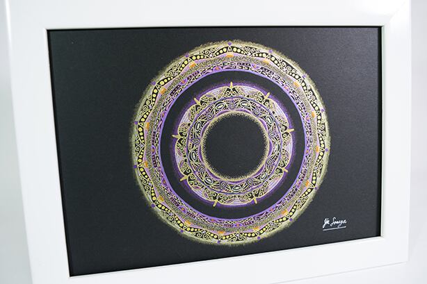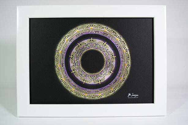大天使ミカエルを意識した作品で、そのため金色と紫色をメインに描きました。
