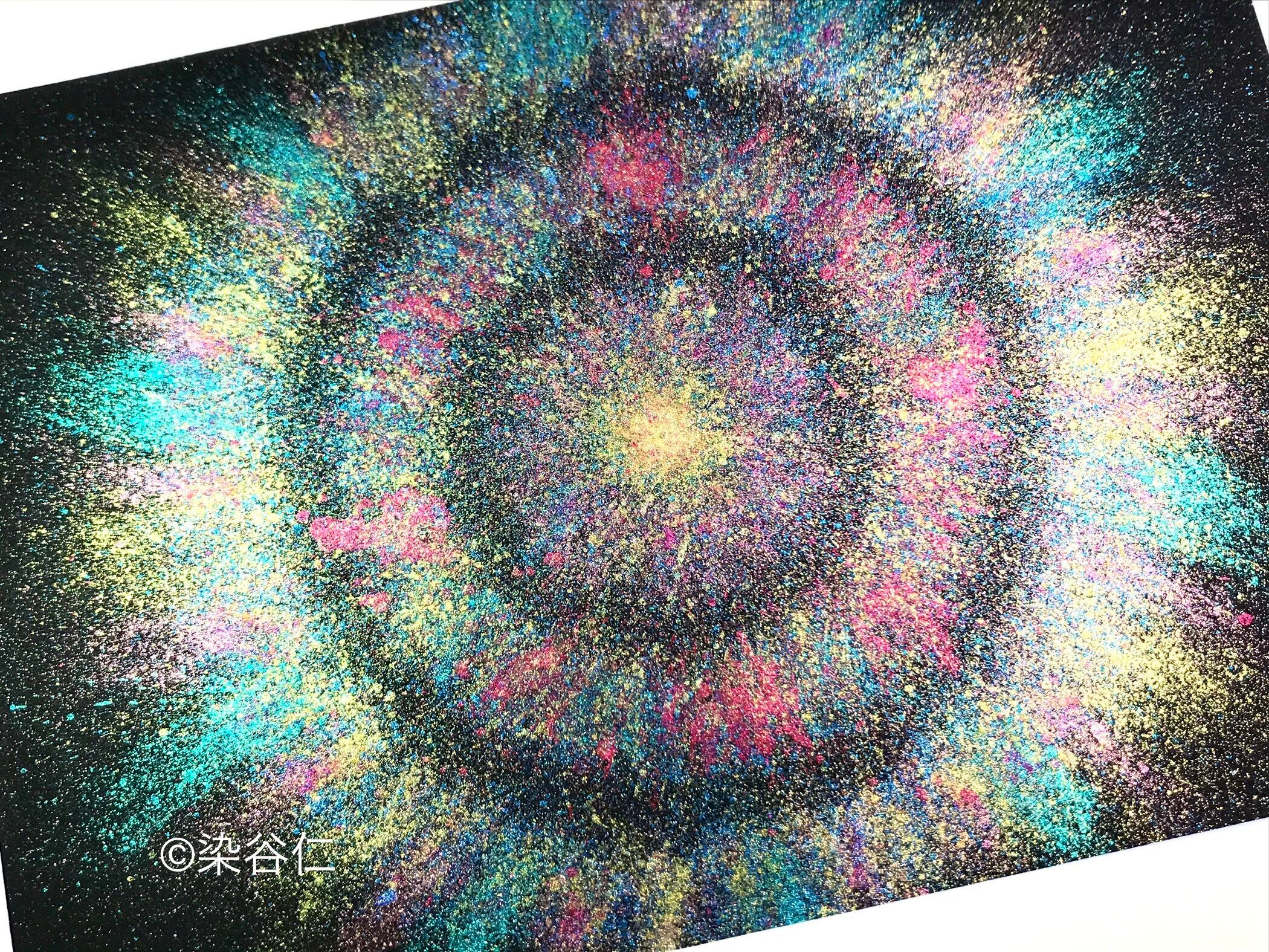 ラメ素材の画材を使用しているので、光が反射してキラキラしています。