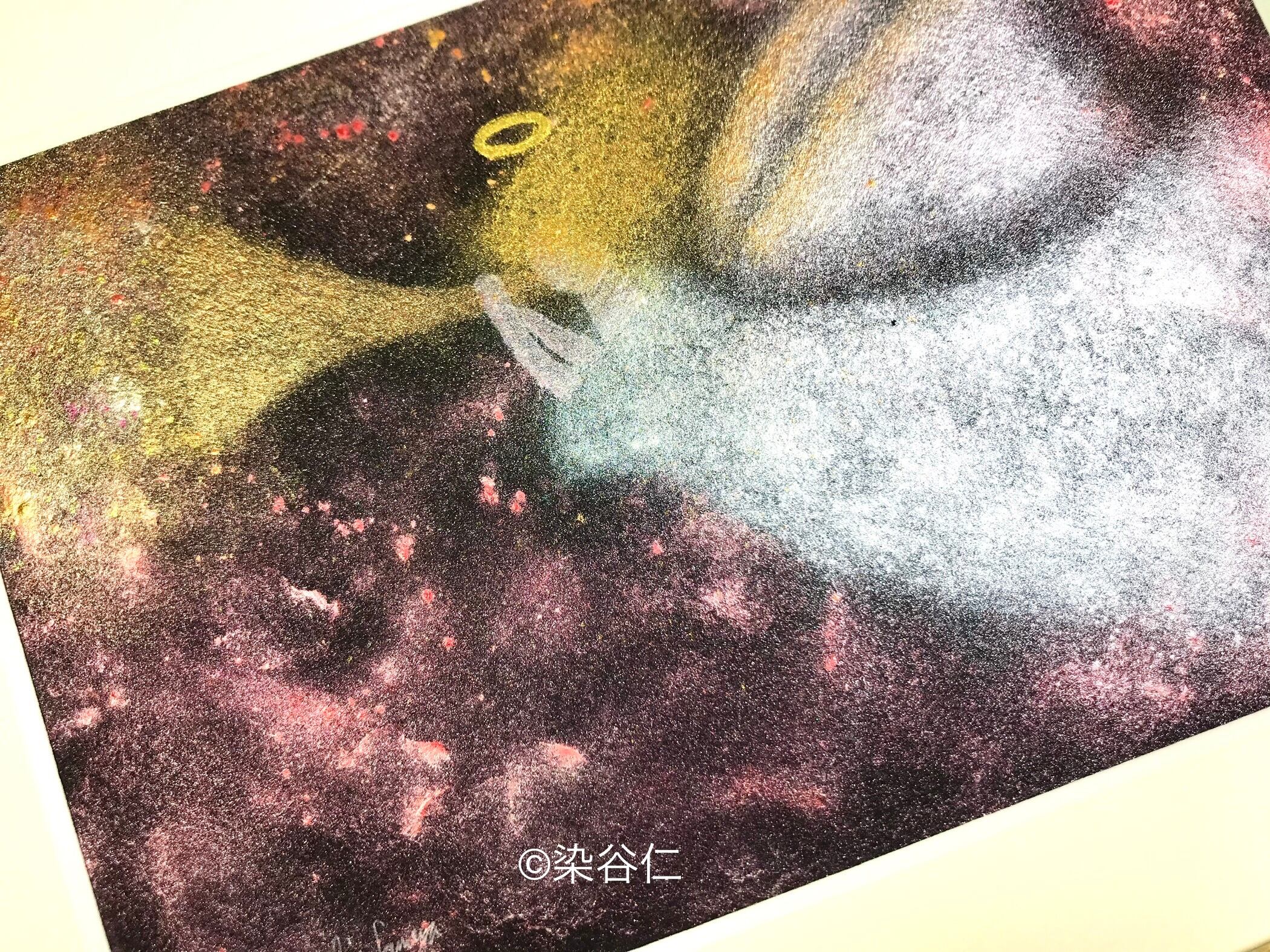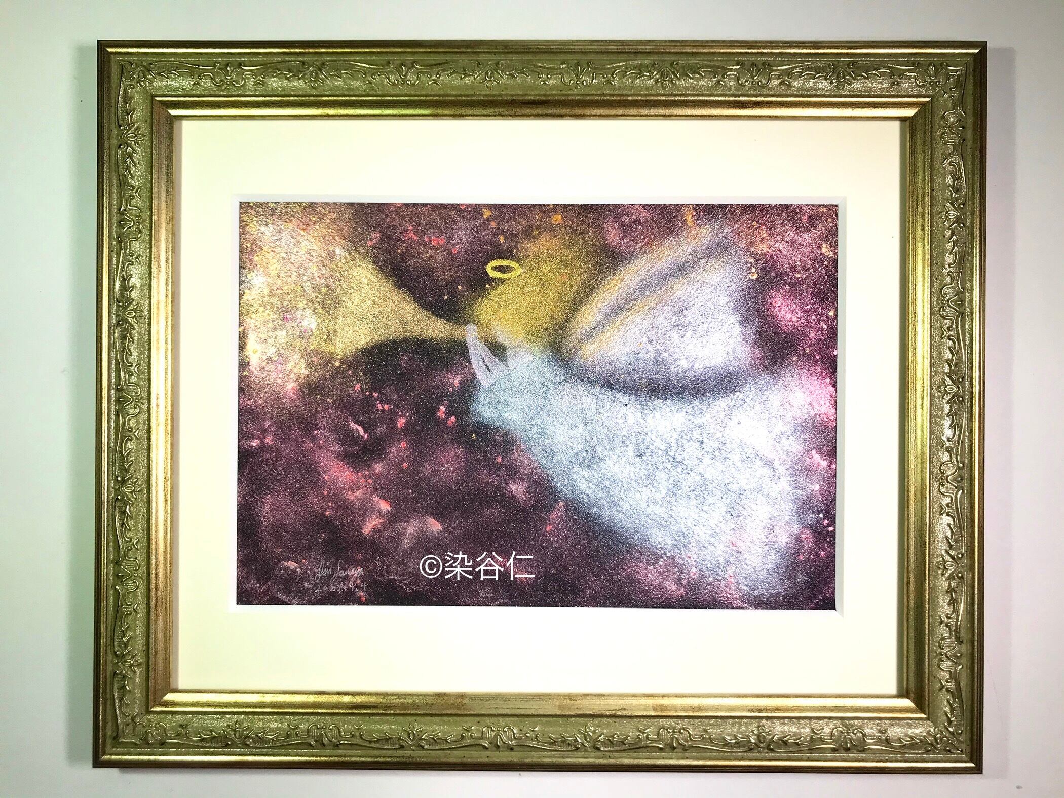 雲母(マイカ)粉末の画材を使用しているので、光が反射してキラキラしています。
