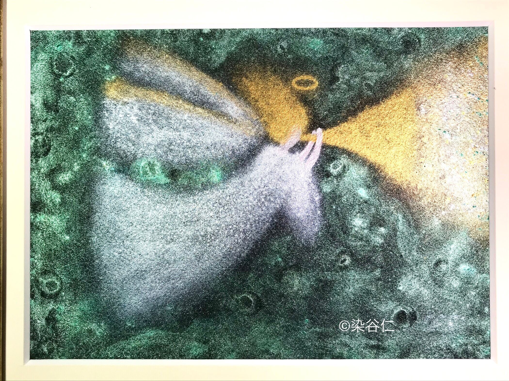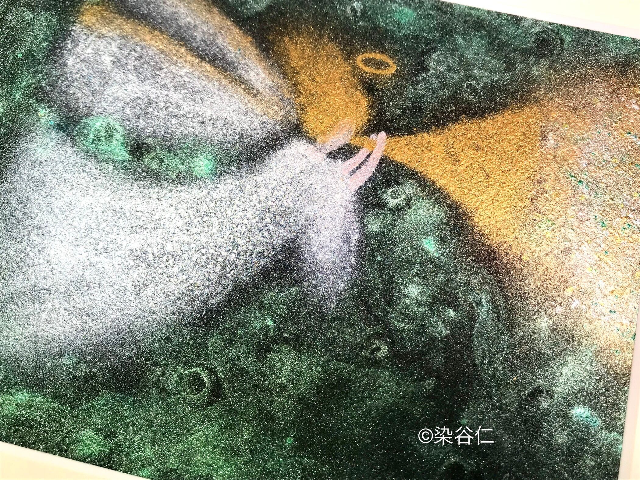 雲母(マイカ)粉末の画材を使用しているので、光が反射してキラキラしています。