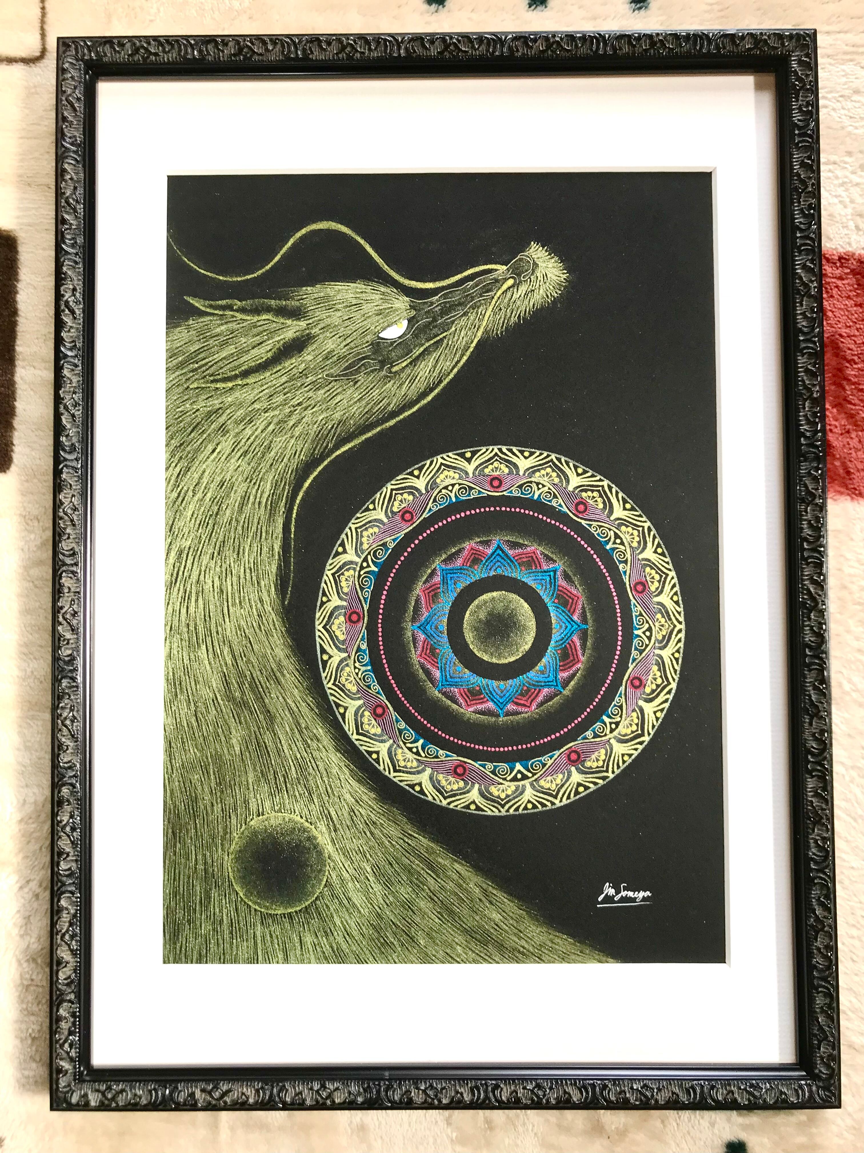心を癒してくれる「金龍」と宇宙を表す「曼荼羅アート」の絵画作品です。原画になります。