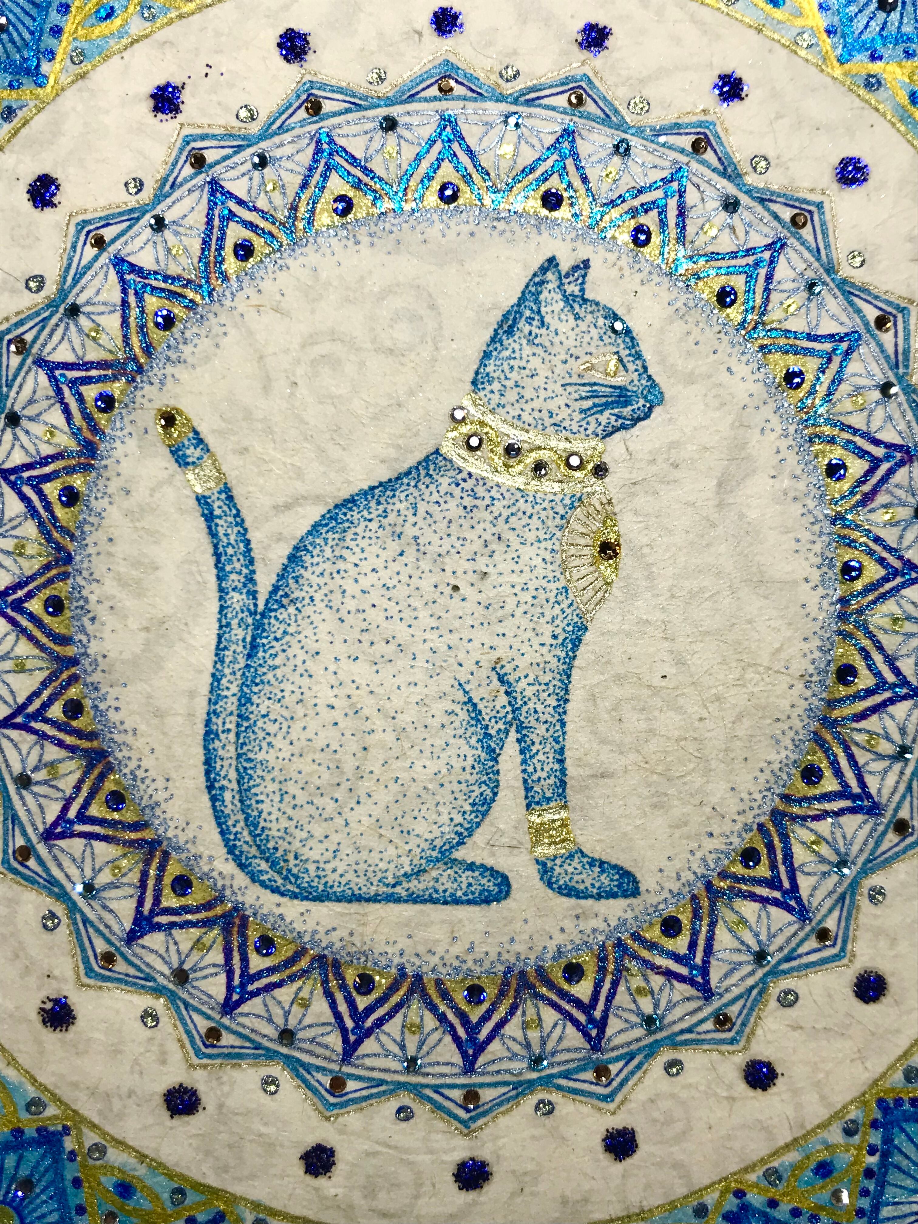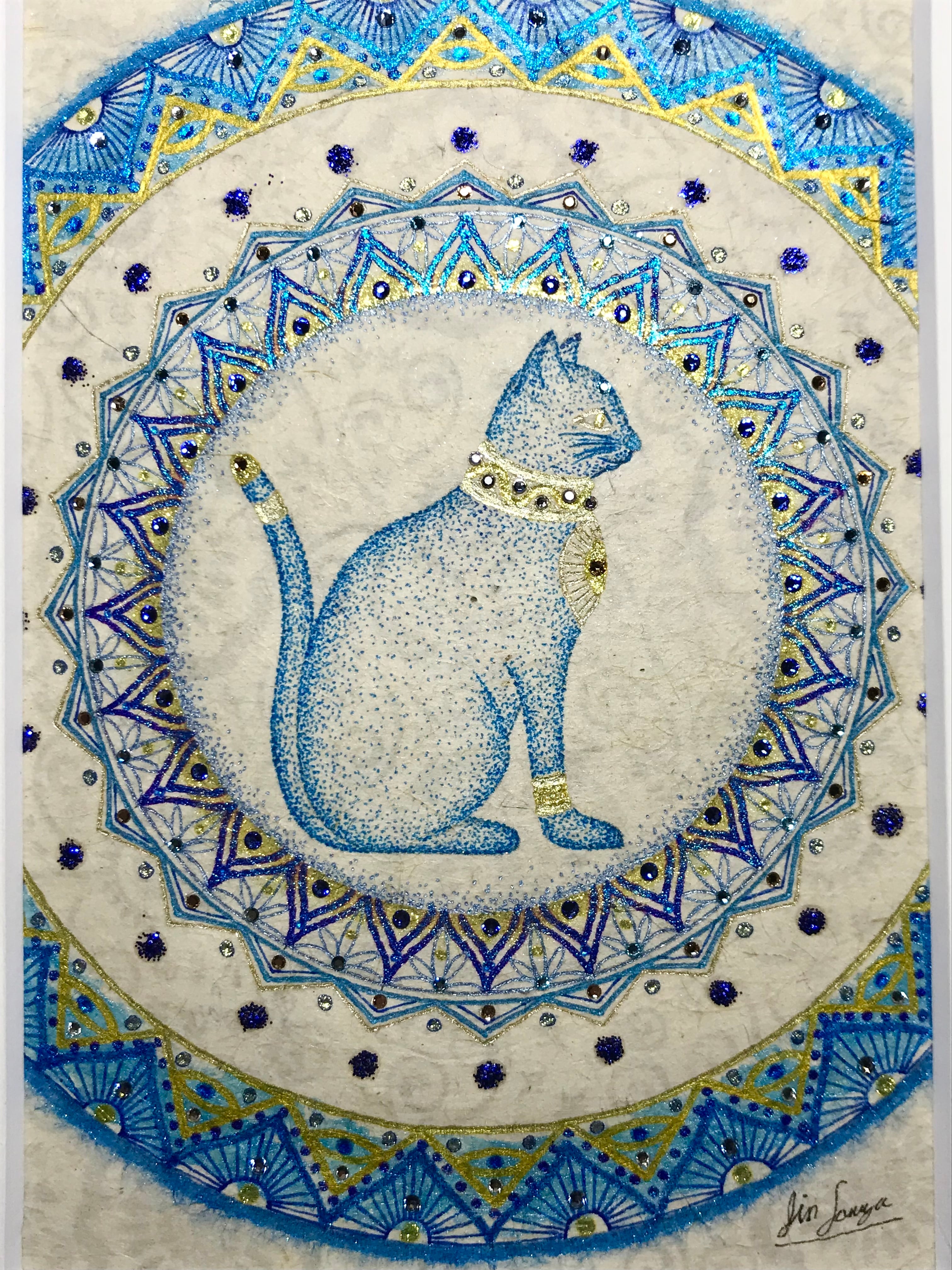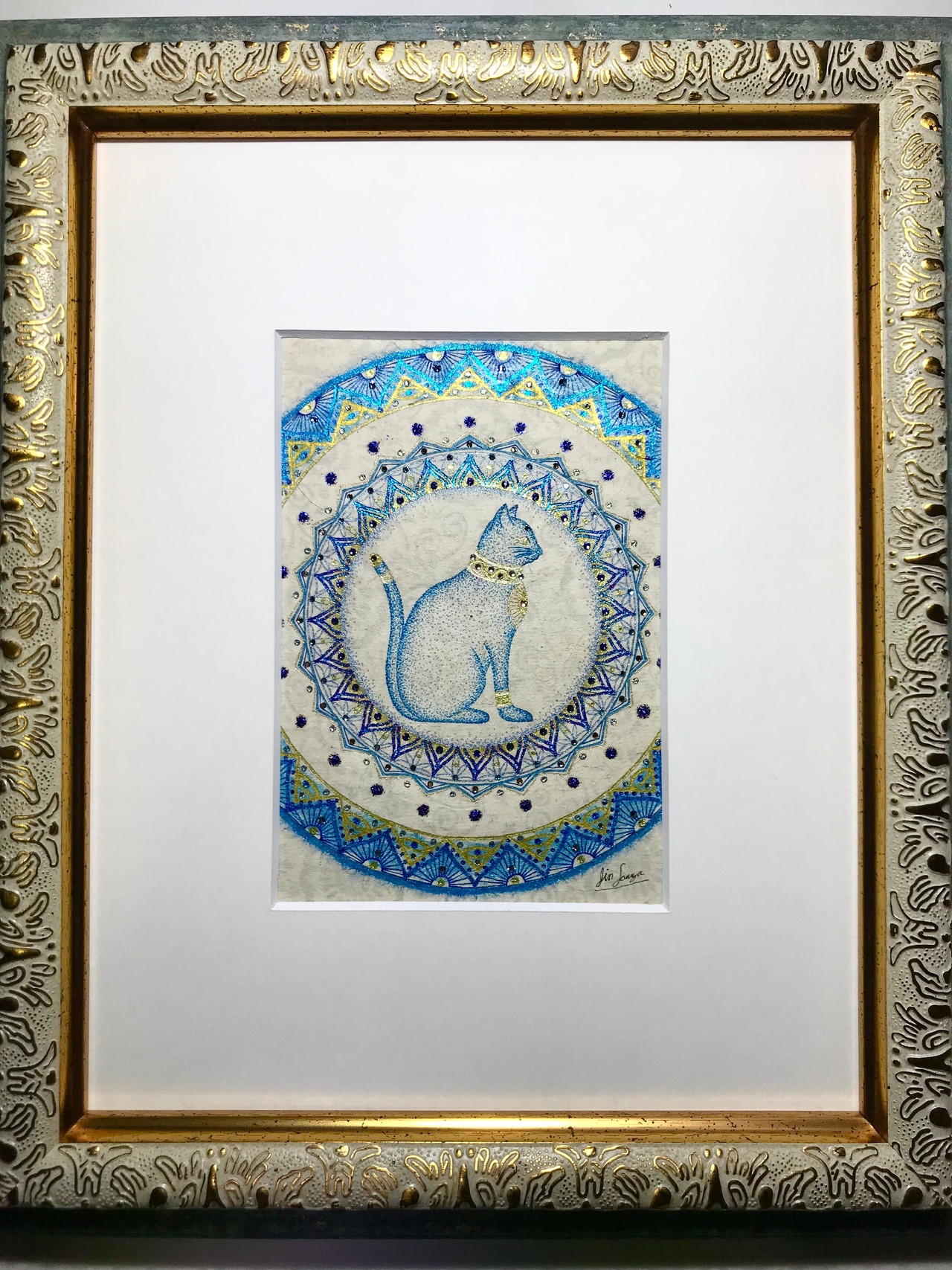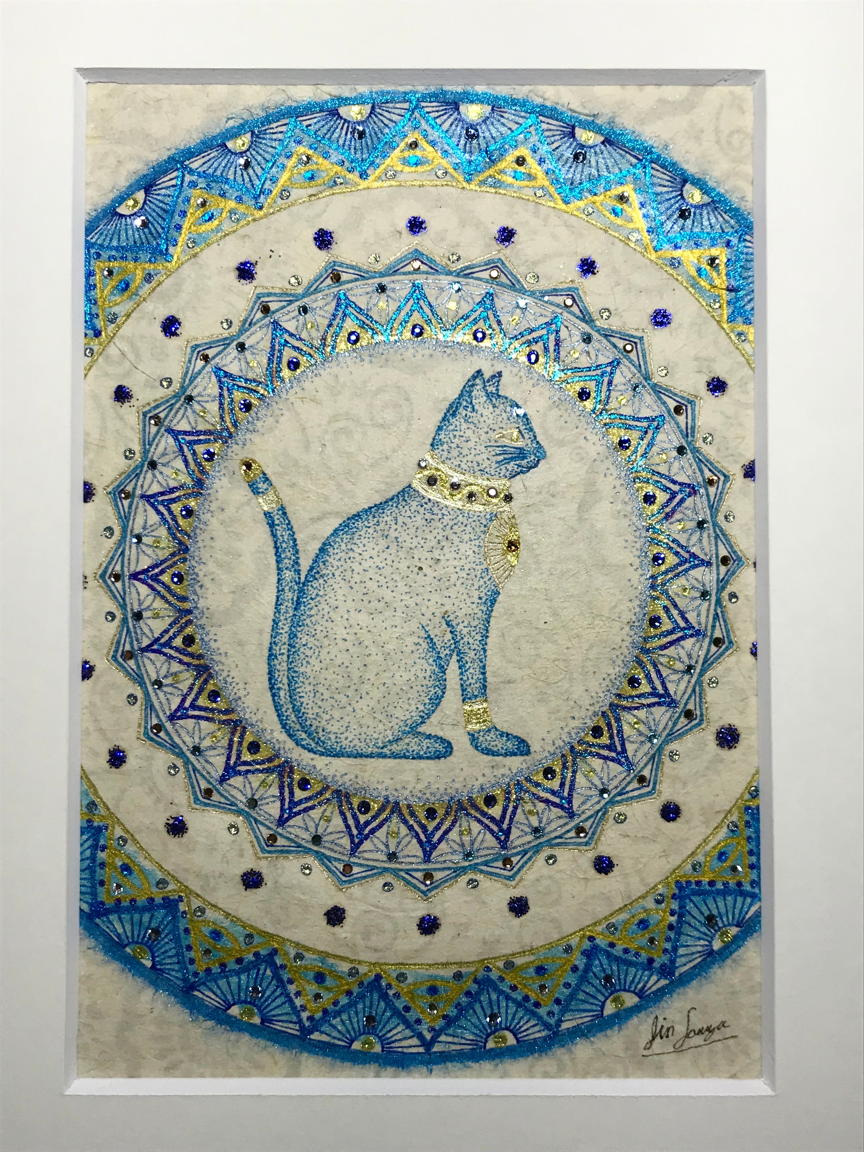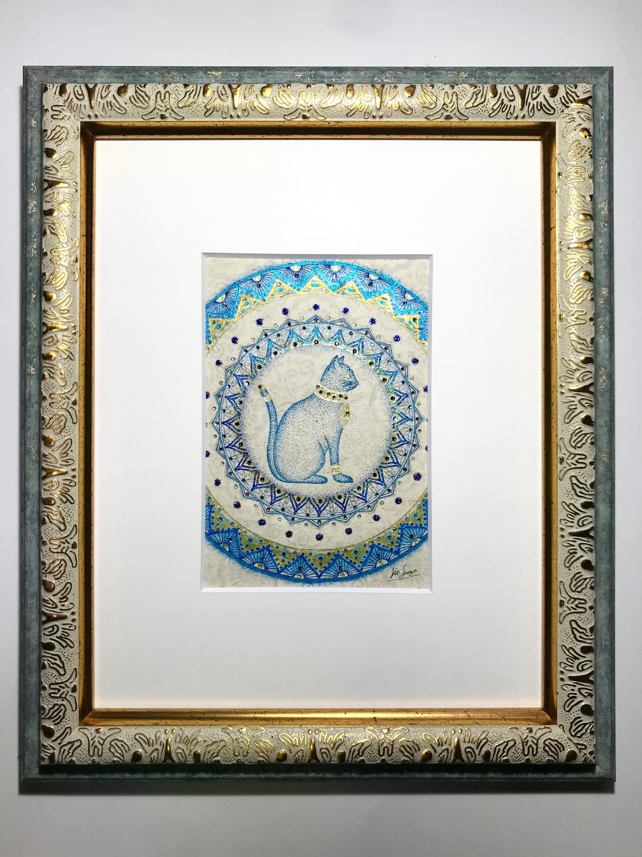 また、紙の表面には模様がプリントされていますが、裏面に描いています。表面の模様が透かして見えて背景にもなっています。